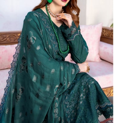 We believe that every woman deserves to feel beautiful, confident and connected to her roots. That's why we source only the finest lawn fabrics — from embroidered summer suits to fancy chiffon dupattas — ensuring quality you can see and feel with every wear.